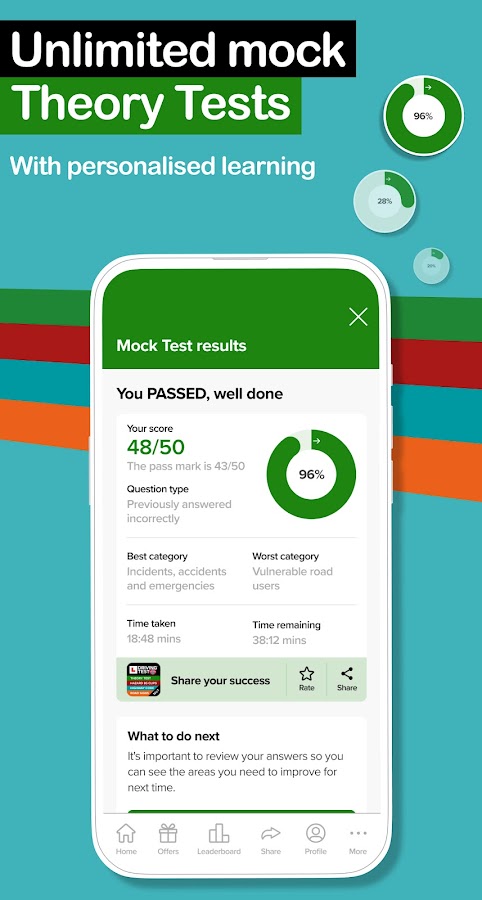 Включая НОВЫЕ видеосюжеты DVSA. Водители могут практиковаться в выполнении вопросов с несколькими вариантами ответов, используя короткое видео — прямо как на настоящем экзамене. Отслеживайте свой прогресс, чтобы к моменту сдачи экзамена по вождению быть готовыми к официальному теоретическому экзамену!