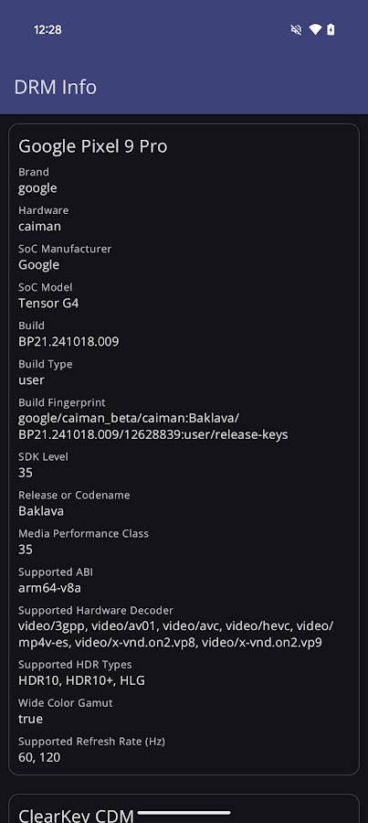 Это приложение будет отображать информацию модуля управления цифровыми правами (DRM) из Android Media Framework и API MediaDrm.