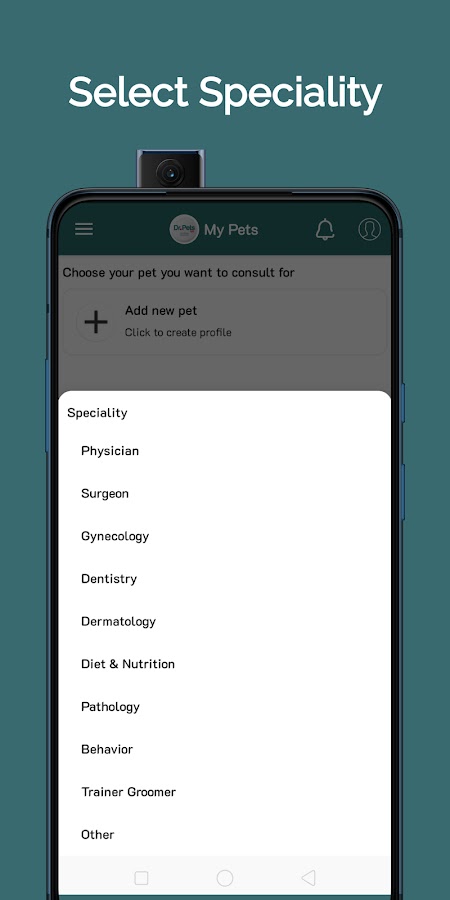 • Вы можете проконсультироваться от имени вашего питомца, и вы можете получить диагноз и медицинскую консультацию от различных ветеринарных специалистов онлайн