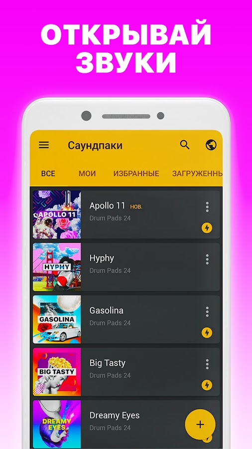Скачайте приложение Drum Pads 24 — создание музыки для Android бесплатно - последняя версия (3.8.16) уже доступна для установки на ваш телефон или планшет.