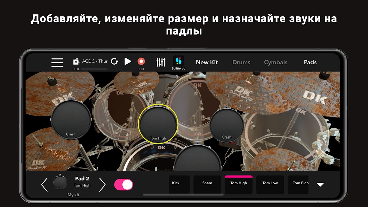 Теперь вы можете играть на басовом барабане ногой. Самое реалистичное приложение для 3D-барабанов.