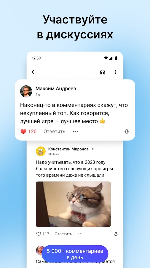 • Добавляйте изображения и гифки к своим комментариям.