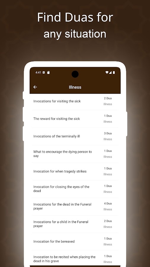 Дуа предоставляет коллекцию из более чем 260 аутентичных зикр и молений, найденных в Священном Коране и Сунне. Это приложение для Android имеет простой и интуитивно понятный дизайн и множество полезных функций.