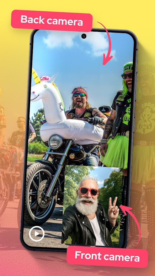 🤳 Выбирайте «картинка в картинке» или разделенный экран во время съемки с помощью двойной камеры спереди и сзади;