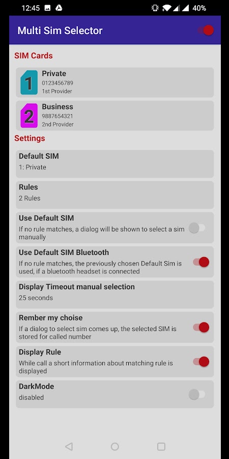 — на ваш телефон: возможность показать вам все доступные SIM-карты в правилах, которые вы можете установить.