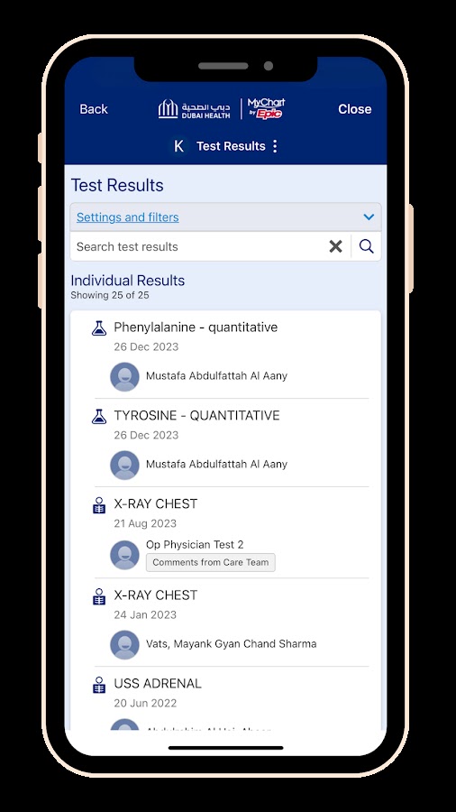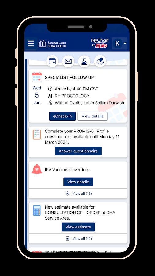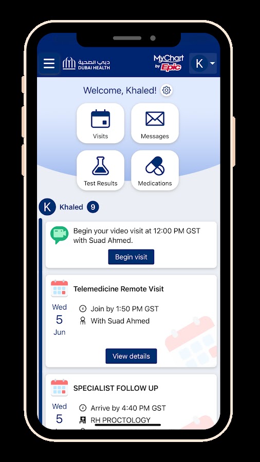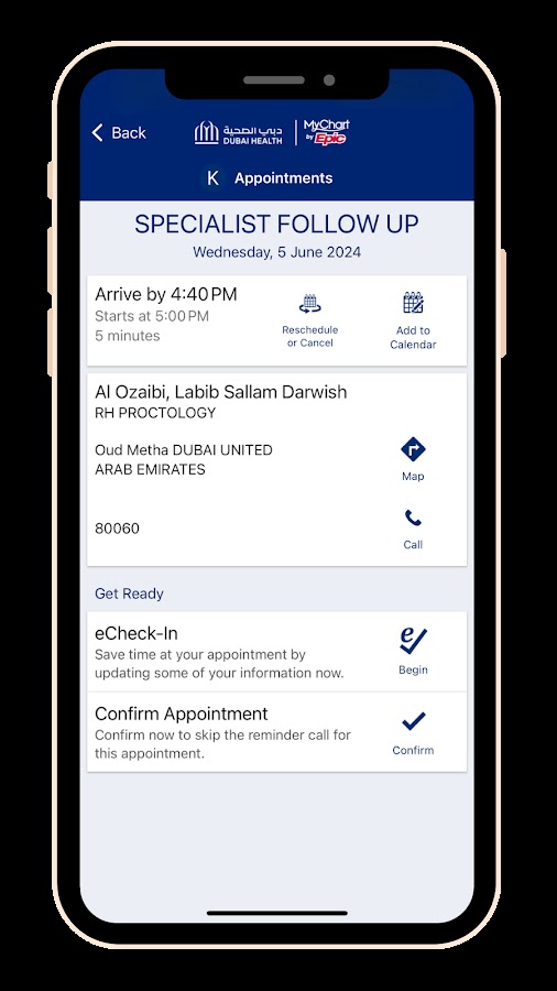 • Бронируйте, управляйте и отменяйте встречи в медицинских учреждениях Дубая.
