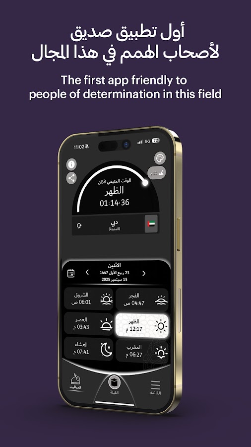 Первое международное приложение, использующее астрономические критерии, соответствующие шариату, выпущенное государственным учреждением (Департаментом по делам ислама и благотворительной деятельности в Дубае, под контролем Международного астрономического центра).