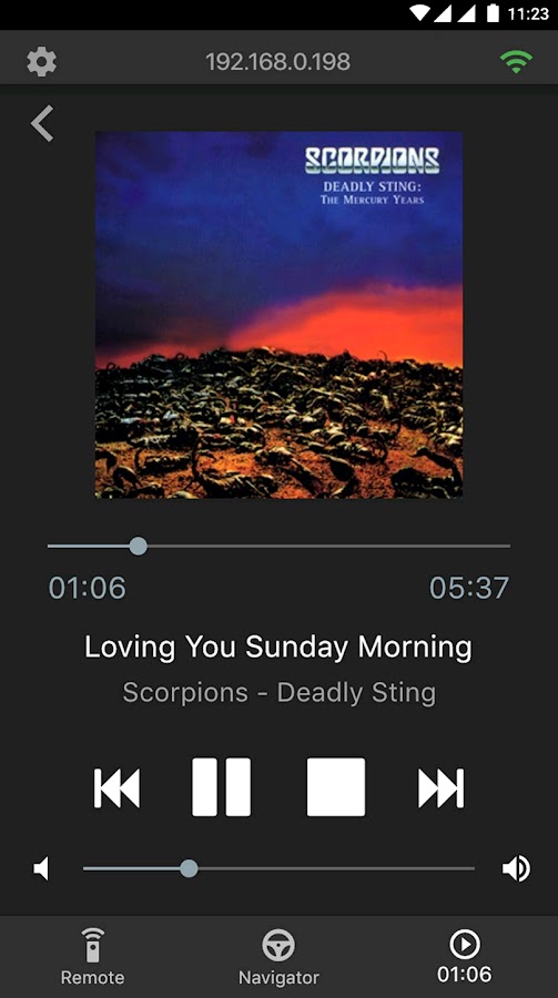 — Управление воспроизведением (воспроизведение / пауза, остановка, предыдущий / следующий, позиция воспроизведения, громкость).