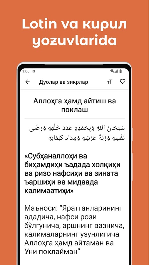 Скачайте приложение Дуолар ва зикрлар (истиғфор) для Android бесплатно - последняя версия (1.8) уже доступна для установки на ваш телефон или планшет.