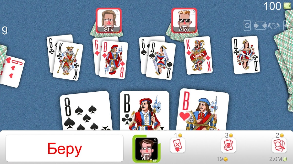 5. Выбор играть в карты честно или “С шулерами”. При честной игре за правильностью карт следит сервер. При выборе играть в карты “С шулерами” за честностью следят игроки. Ловите шулеров, помечайте их и они не смогут больше Вас обмануть!