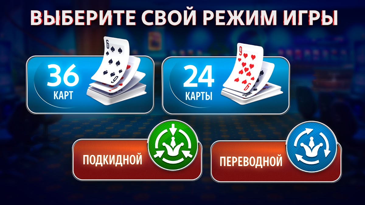 ПОДКИДНОЙ И ПЕРЕВОДНОЙ ДУРАК: В нашей игре вы можете выбрать режим себе по душе: подкидной дурак позволит вам быстро реагировать на действия соперников, а переводной дурак поможет развить стратегическое мышление.