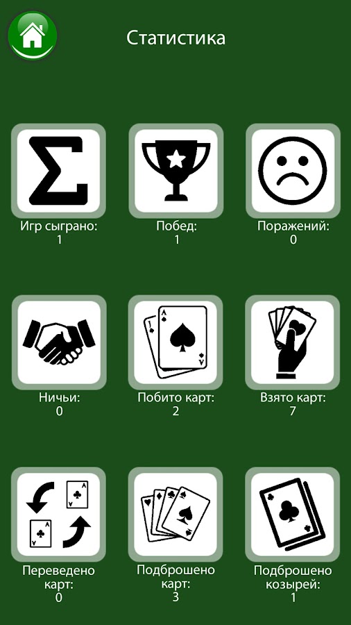 Смотрите за статистикой своих игр и улучшайте показатели для дурака онлайн либо без интернета.