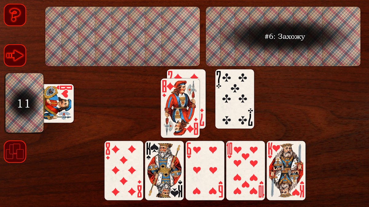 — интересный алгоритм игры компьютера, который не даст вам скучать, но в тоже время он играет Честно — в карты игрока не смотрит, козыри под себя не раздаёт, тусует колоду правильно.