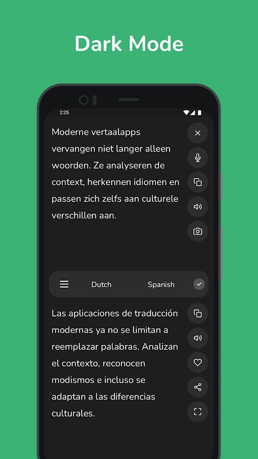 • Мгновенный перевод: получайте быстрые и точные переводы с голландского на испанский и наоборот, идеально подходящие для повседневного использования.