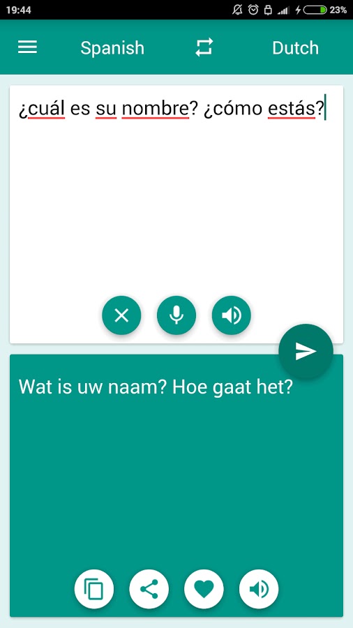 Это бесплатный переводчик может быстро перевести с Нидерландский на испанский и испанско на голландский (Nederlands-Spaanse vertaler, Traductor испанский-neerlandés) слов, а также полных предложений. Мгновенный перевод и полный действия из слов.