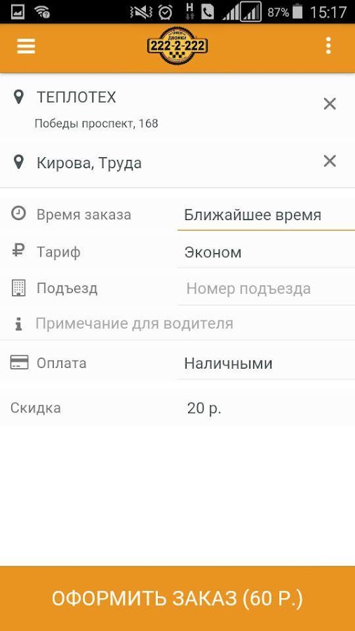 Приложение для заказа транспорта «ДВОЙКИ» в Челябинске.
