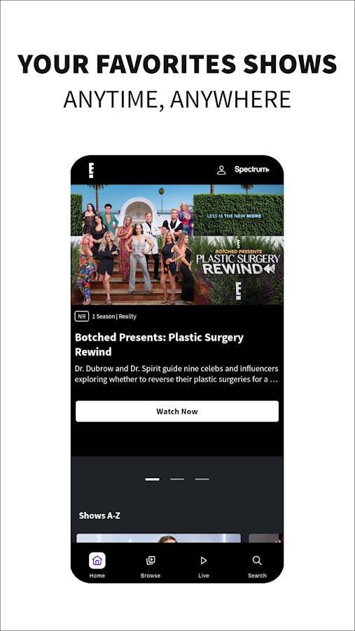 o Смотрите полные эпизоды самых популярных шоу E! о поп-культуре, таких как Live from E!, Kimora: Back in the Fab Lane, Botched Presents: Plastic Surgery Rewind, Honestly Cavallari: The Headline Tour и МНОГОЕ ДРУГОЕ!