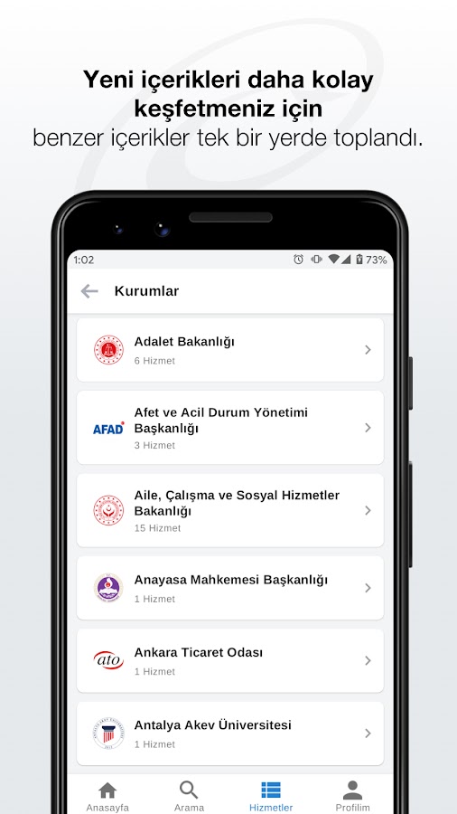 Новые услуги шлюза электронного правительства в приложении для Android по адресу www.turkiye.gov.t теперь на вашем мобильном устройстве.