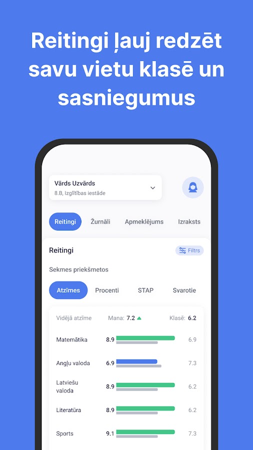 Приложение обеспечивает полную функции E-класса, как https://www.e-klase.lv.