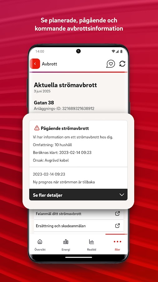 С приложением E.ON вы всегда получаете обновления в режиме реального времени об отключениях электроэнергии в вашем доме или на даче. Вы также видите, когда ожидается решение проблемы и когда будет восстановлено питание.
