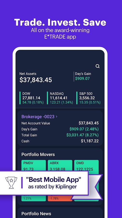 Скачайте приложение E*TRADE: Invest. Trade. Save. для Android бесплатно - последняя версия (13.0.0.9800) уже доступна для установки на ваш телефон или планшет.