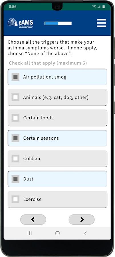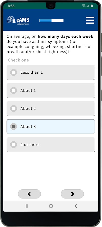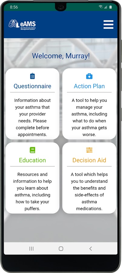 Приложение Electronic Asthma Management System (eAMS) — это инструмент, который поможет вам взять под контроль лечение астмы.
