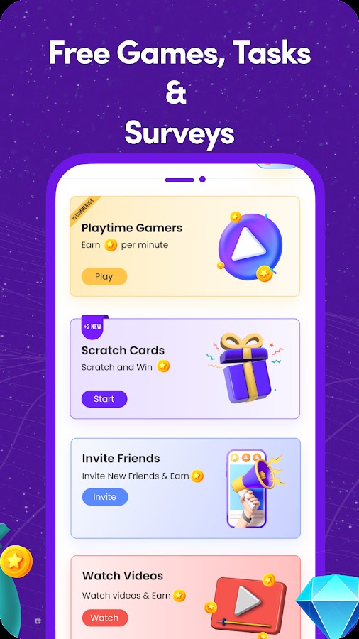 Зарабатывайте бриллианты, используя наши спонсируемые тестовые игры, заполняя опросы и задания.