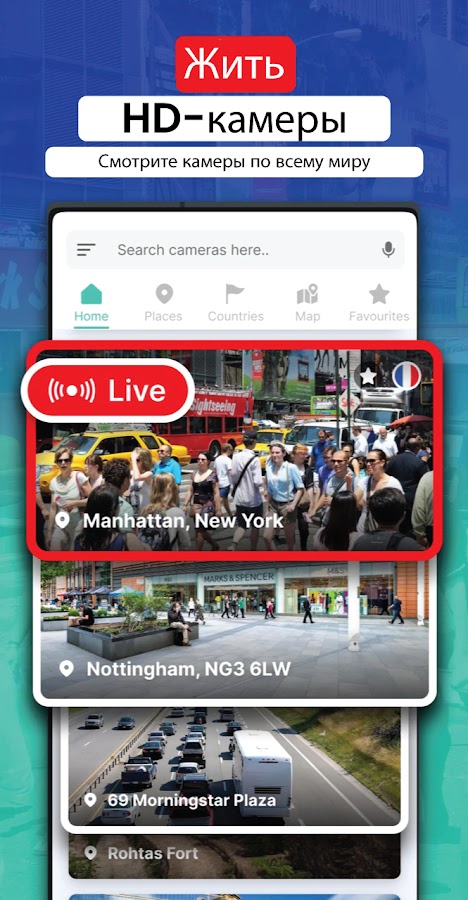 • Кадры HD камеры в прямом режиме CCTV из любой части мира с помощью GPS Камеры Земли — Карта Земли.