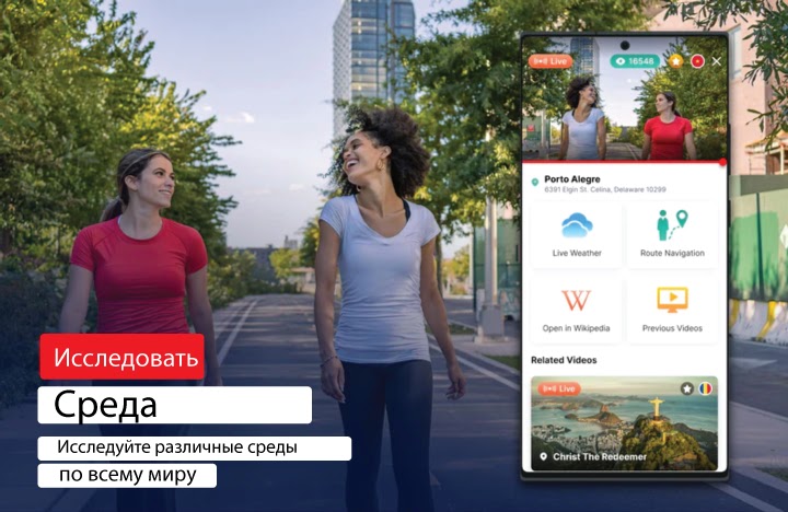• Вы можете поделиться прекрасными фото мест со своей семьей и друзьями через несколько приложений социальных сетей