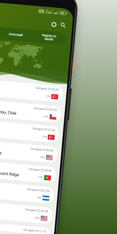 ● Персонализированные уведомления: настройте параметры оповещений в зависимости от местоположения, величины и расстояния от вашего текущего местоположения.