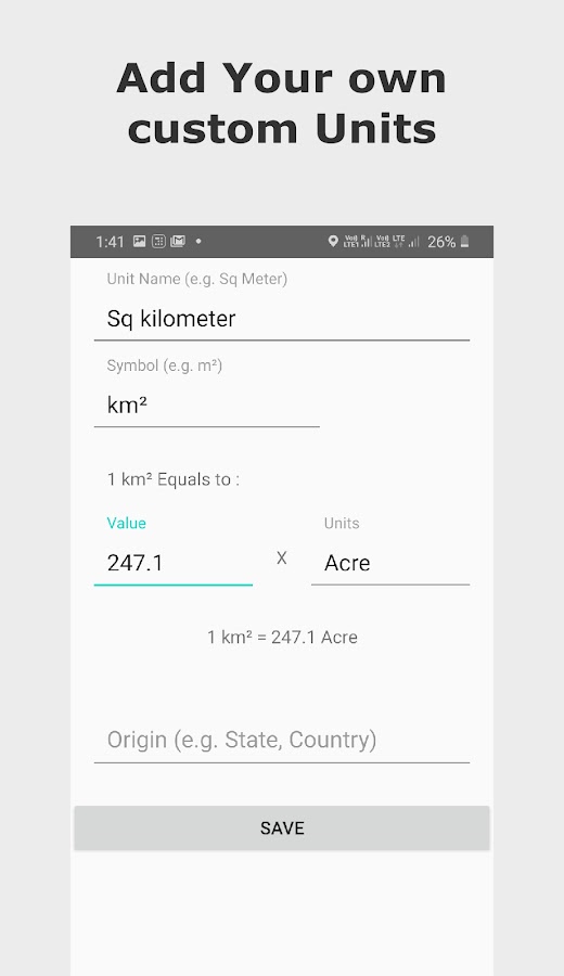 — Расчетная площадь может быть преобразована в любую единицу измерения. Конвертер единиц имеет все имперские единицы, метрические единицы, а также включает основные индийские единицы, используемые для регистрации земли в разных штатах.