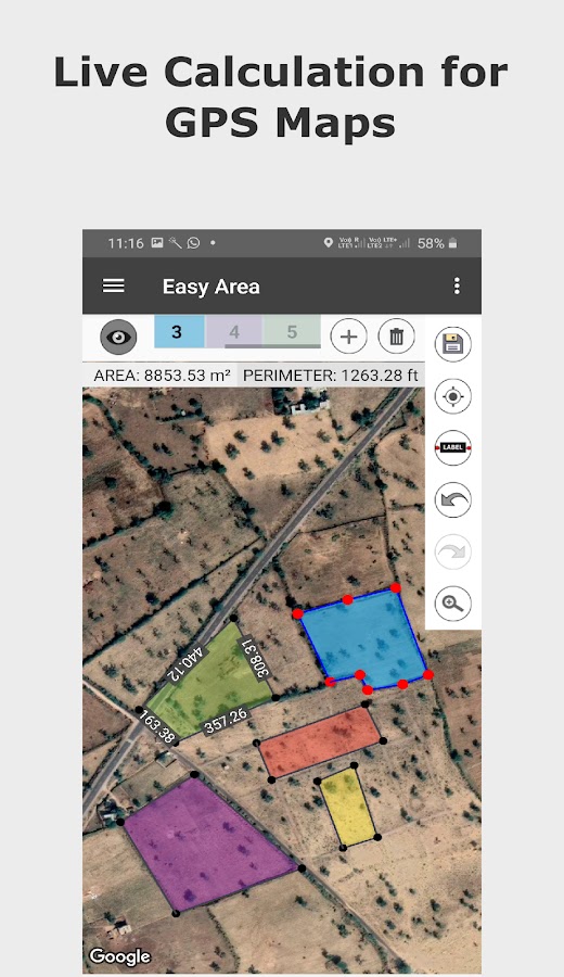 Easy Area — это приложение-калькулятор площади для измерения площади земли, расстояния и периметра на карте или изображениях самым простым способом. Имеется встроенный конвертер единиц для измерения площадей и расстояний в различных индийских единицах измерения.