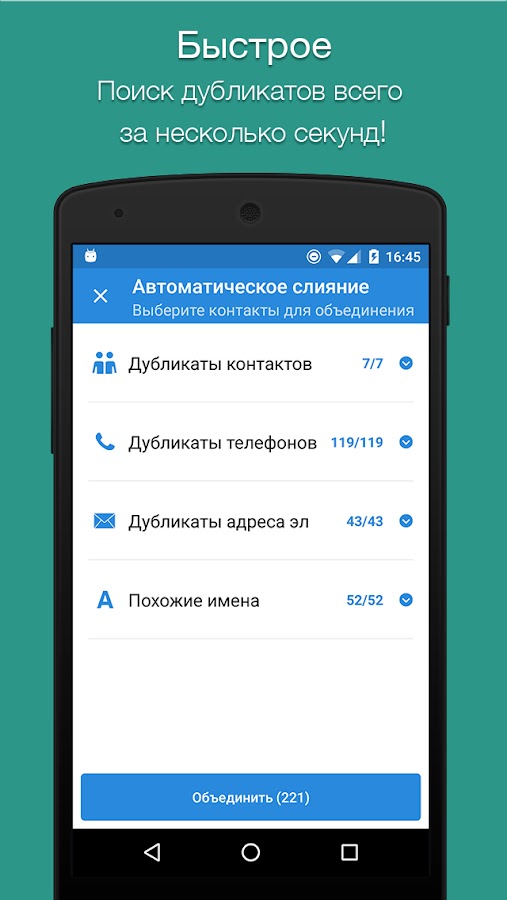 Объединяйте все дублирующиеся контакты одним касанием!