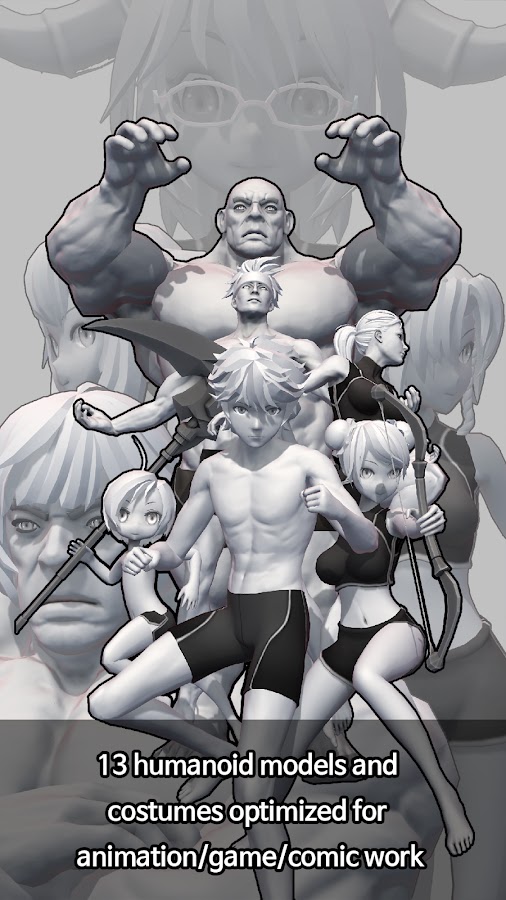 2. Модели в стиле комиксов. В предыдущих приложениях позы было много мужчин и женщин с реалистичным соотношением восьми голов, что делало их непригодными для анимации, вебтунов или игровых иллюстраций. Easy Pose подготовлен для моделей с разным типом телосложения.