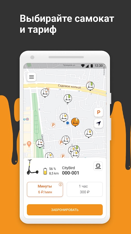 В приложении есть возможность бесплатного бронирования, страховка на время поездки и мультиаренда — можно взять несколько самокатов с одного аккаунта.