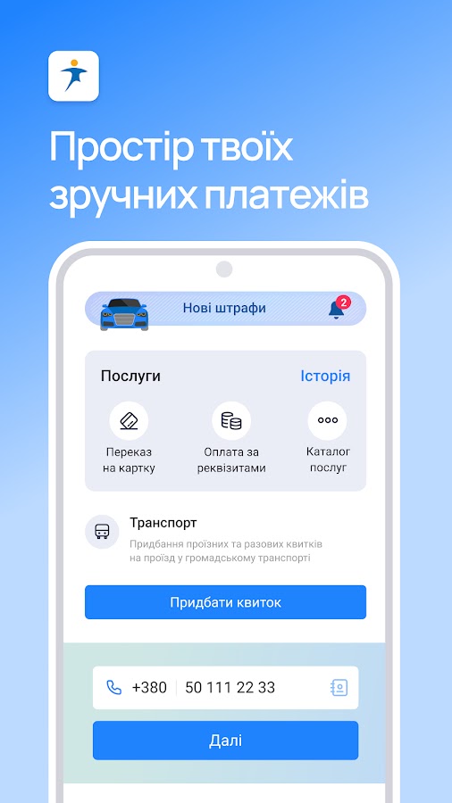 🚗 Погашение автоштрафов, покупка бензина онлайн;
