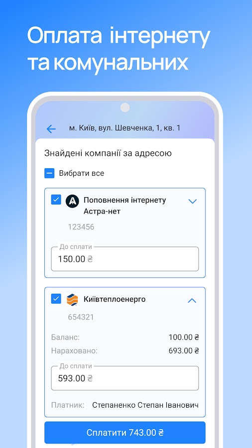 💡 Оплата «коммуналки» (Газсети, Yasno, Нафтогаз), Интернета и ТВ (Ланет, Триолан, Воля, Viasat, Megogo, SWEET.TV), парковка и т.п.;