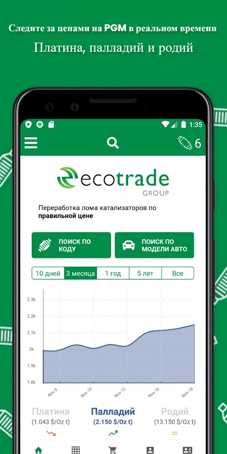 Ecotrade Group является ведущим аккредитованным покупателем каталитических нейтрализаторов. Более пятнадцати лет деятельности компании вылились в огромную информационную базу, из которой был разработан детальный, ежедневно пополняемый каталог, включающий более 20000 товаров.