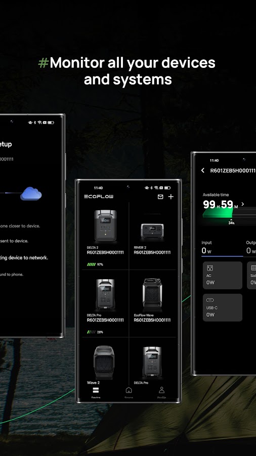 Use the EcoFlow app to control and monitor your EcoFlow power station, Power Kits, and more. Connect all your devices via Bluetooth or Wi-Fi to view real-time stats at your fingertips. Check the basics, such as capacity levels and input power, or take energy into your own hands by setting charging levels or charge speeds.