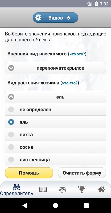 Определителем может пользоваться даже неспециалист — достаточно увидеть или сфотографировать насекомое или оставленные им повреждения. В определителе нужно выбирать подходящие для вашего насекомого особенности признаков. С каждым выбранным ответом число видов будет уменьшаться, пока не придет к минимальному числу.