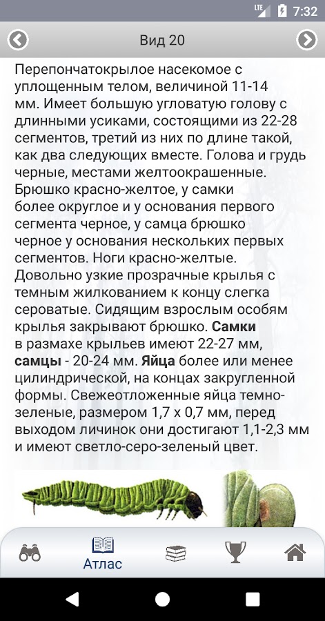 Атласом можно пользоваться и независимо от определителя — просматривать описания и изображения видов насекомых.