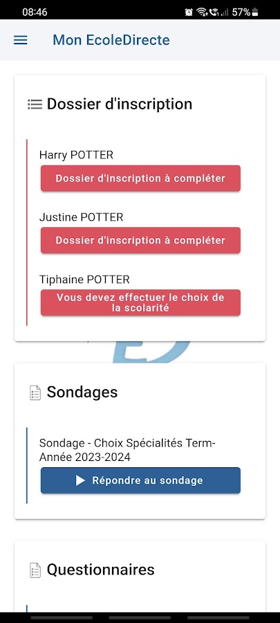 Это приложение доступно для семей, студентов, преподавателей и сотрудников, которые уже есть учетная запись на EcoleDirecte в их школе.