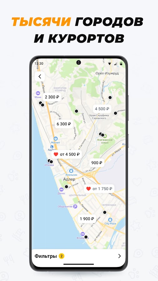 Воспользуйтесь встроенными фильтрами и выбирайте отель или квартиру по нужным параметрам: даты бронирования, расположение, цена, количество гостей, удобства и дополнительные услуги. Удобная настройка интерфейса: просматривайте предложения списком или ищите подходящие варианты размещения на интерактивной карте.