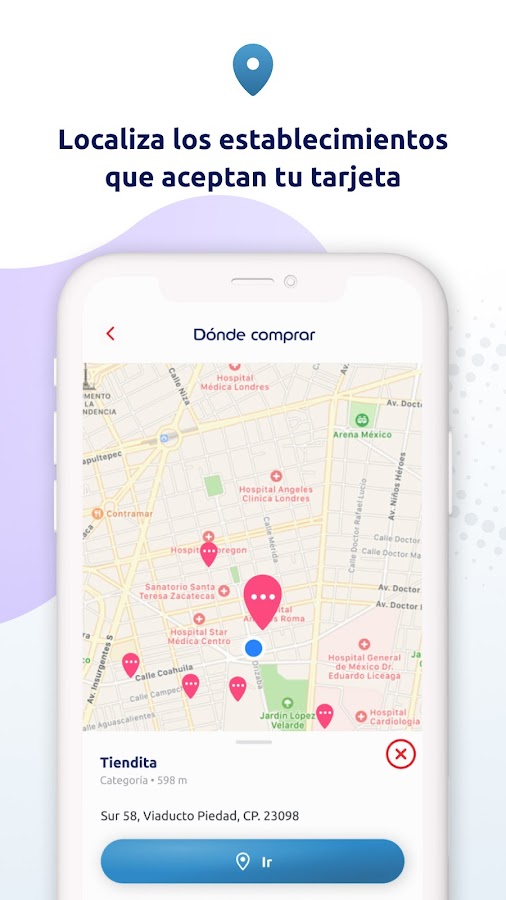 В Мексике есть тысячи дочерних заведений в обычных магазинах и в Интернете 🏬. Edenred Wallet позволяет легко найти их с помощью карты, которая определяет близких вам людей 📌