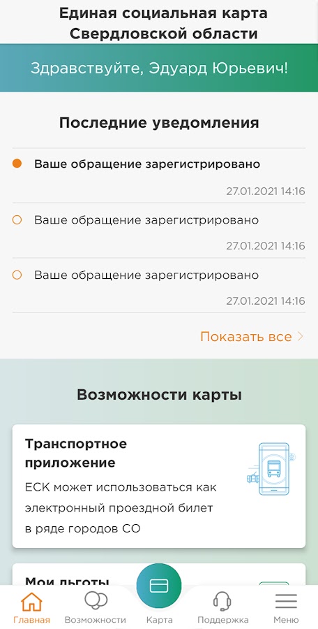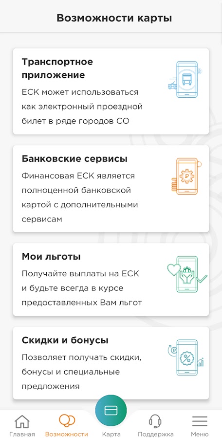 Приложение для держателей Единой социальной карты Свердловской области – многофункциональной пластиковой карты, которая служит персональным электронным ключом к разнообразным цифровым сервисам. С помощью ЕСК можно оплачивать товары и услуги, проезд в общественном транспорте, получать денежные переводы и социальные выплаты, а также пользоваться скидками, бонусами и специальными предложениями от популярных торговых сетей и зарабатывать кешбэк.