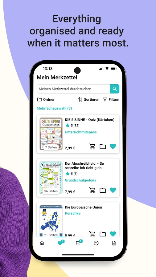Откройте для себя и организуйте тысячи учебных материалов — быстрее, проще и эффективнее. Сохраняйте избранное в списке желаний, получайте к ним доступ офлайн и проверяйте за считанные секунды. Всё в одном приложении, готово к работе в любой момент. Ведь лучшая подготовка означает лучшее преподавание — каждый день.