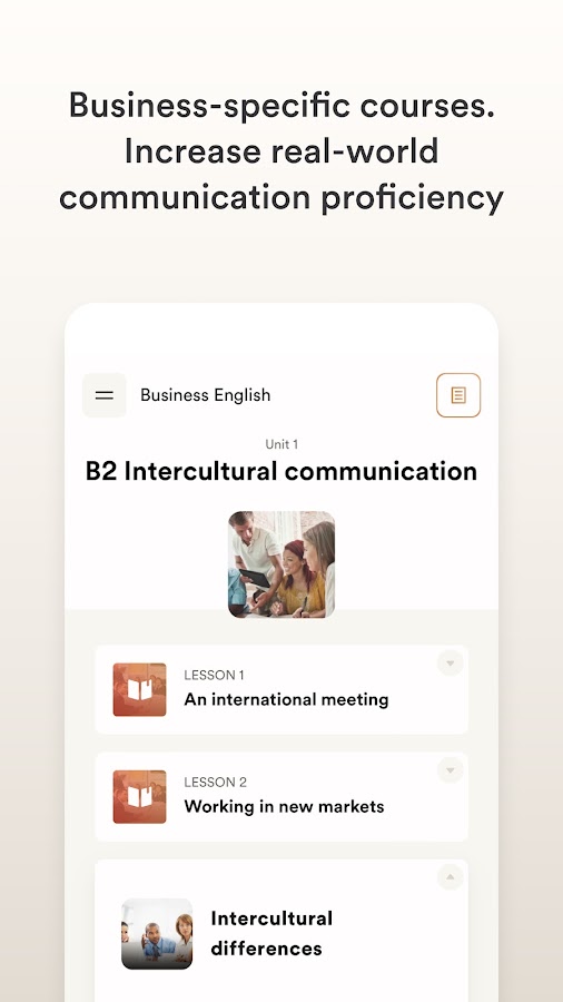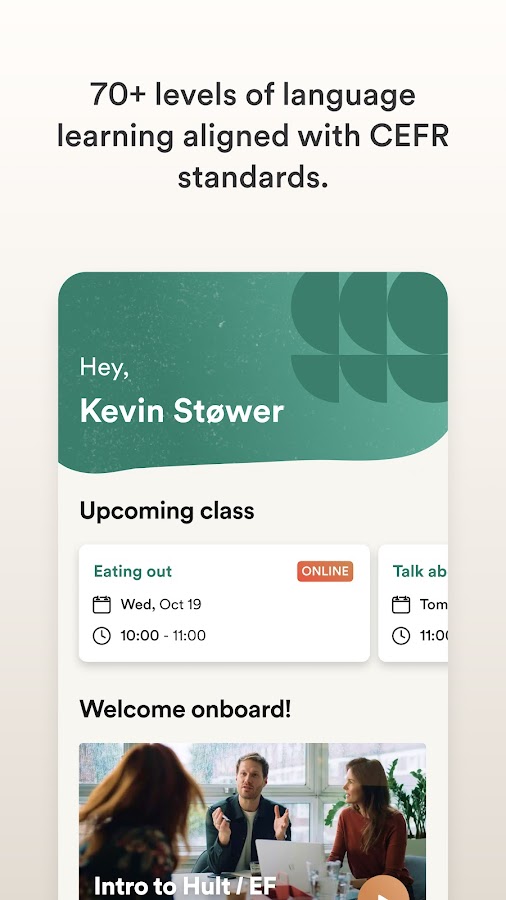 EF Corporate Learning — это первый и крупнейший в мире провайдер корпоративного обучения языкам. С помощью нашего мобильного приложения студенты могут получить доступ к структурированной учебной программе, персонализированному обучению и урокам с преподавателями в реальном времени, чтобы учиться в любое время и в любом месте.