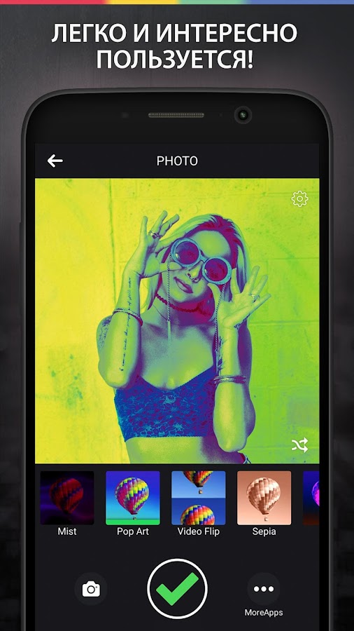 Вы думаете что ваши красивые картинки могут выглядеть лучше? Зачем бы не украсили их? Используйте фильтры для фото — эффекты для фото а также фотоэффекты из приложения Эффекты для Камеры и эффекты для фото и ваши классные фотки станут потрясающими! Эти фотоэффекты превратят ваши семейные фотографии, селфи, и все ваши остальные интересные фотки в настоящие шедевры. Эти фильтры для камеры — фильтры для фото могут создавать ретро фото, прикольные картинки, и многое другое, и поэтому — пора фотографироватья! Приложение Эффекты для Камеры и эффекты для фото превращает красивые фото в шедевры!