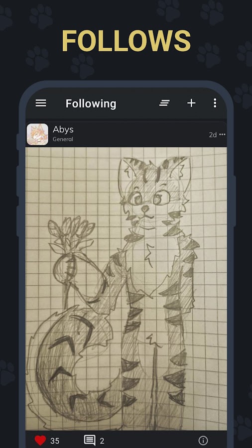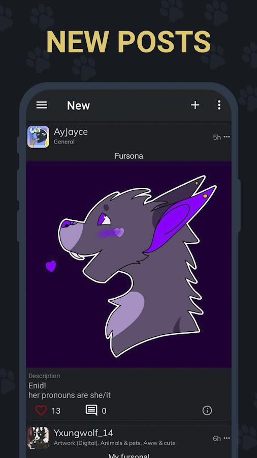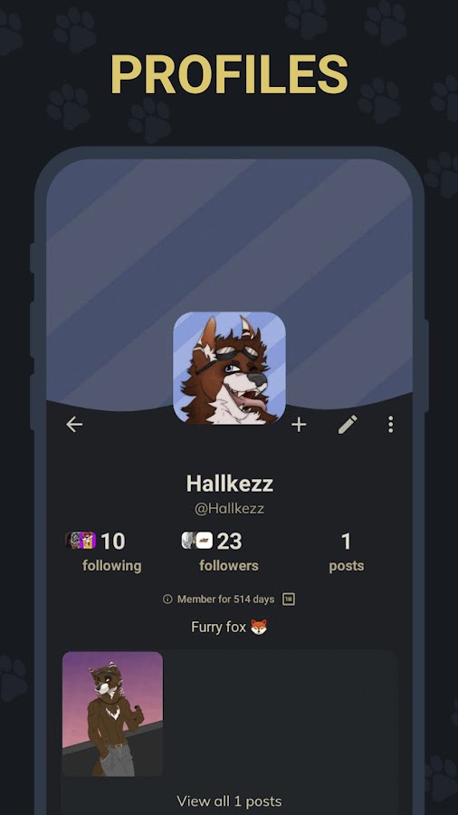 Пушистое приложение для социальных сетей, в котором вы можете поделиться своими любимыми фурри-артами, меховыми костюмами, мемами, GIF-файлами или просто пообщаться с сообществом и другими фурри.