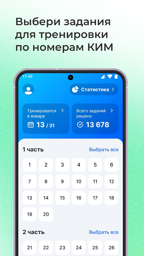 — Следить за своим прогрессом: Используйте раздел статистики для мониторинга своих достижений и выявления слабых мест.